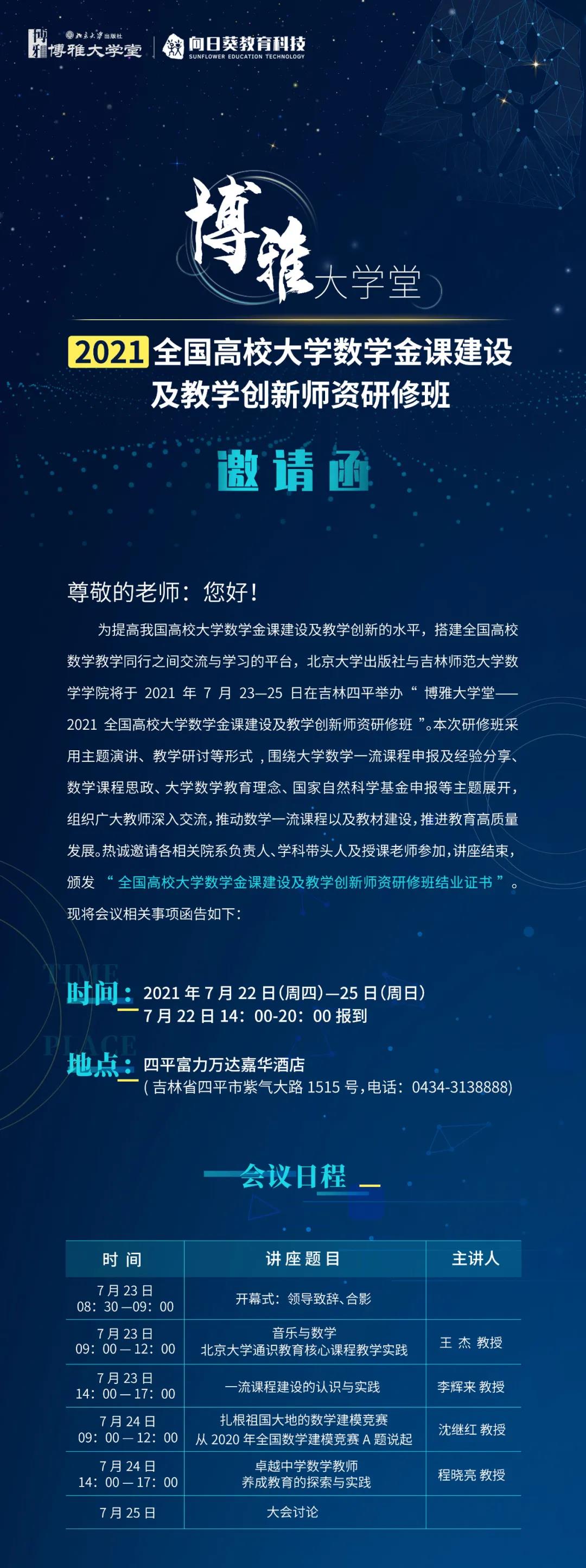 【邀請(qǐng)函】2021全國(guó)高校大學(xué)數(shù)學(xué)金課建設(shè)及教學(xué)創(chuàng)新師資研修班